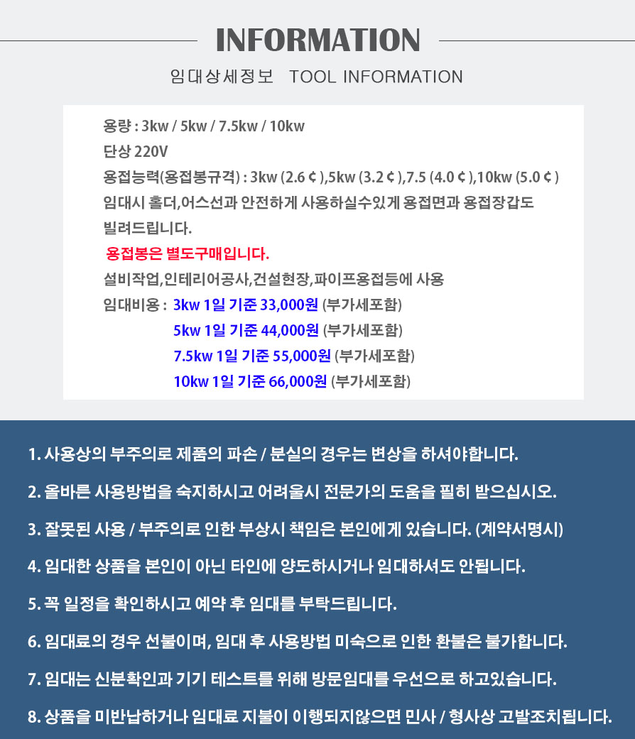 (용접기 임대 는 1대 또는 여러대 빌리실수 있습니다.)