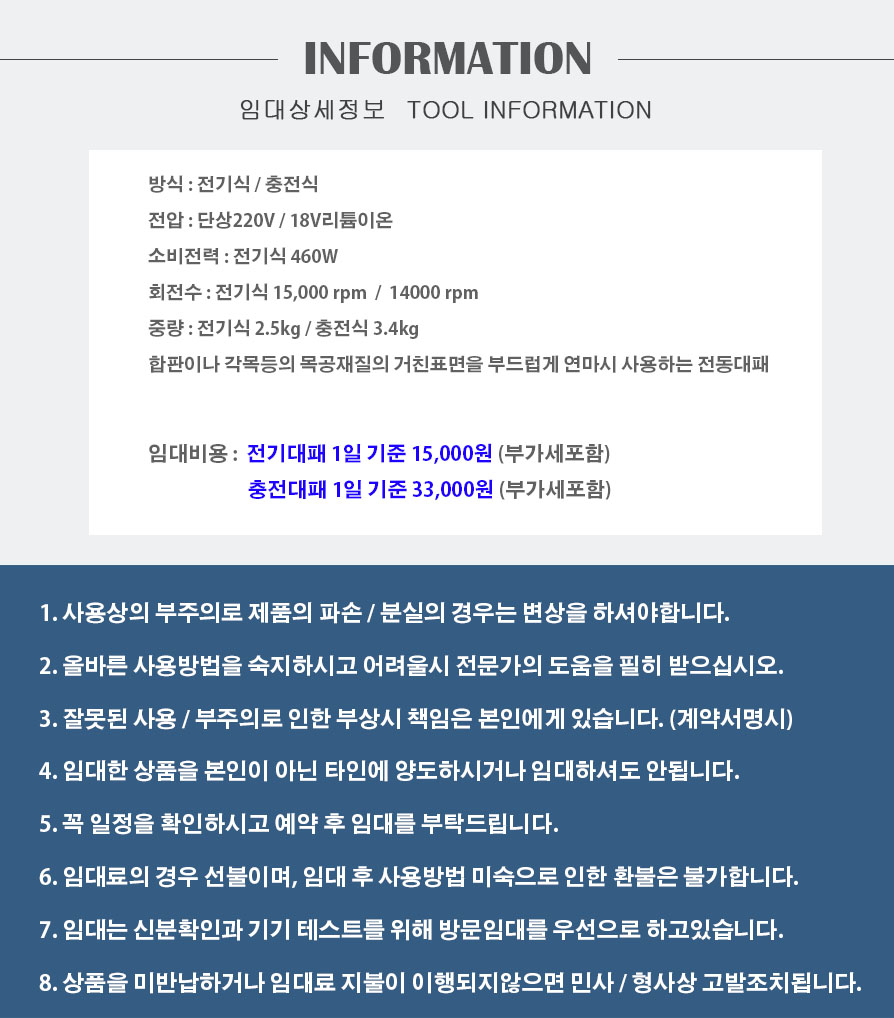 전기대패 이외에도 타카,콤프레샤,에어리스,원형톱등의 모든 장비가 임대가능하오니,